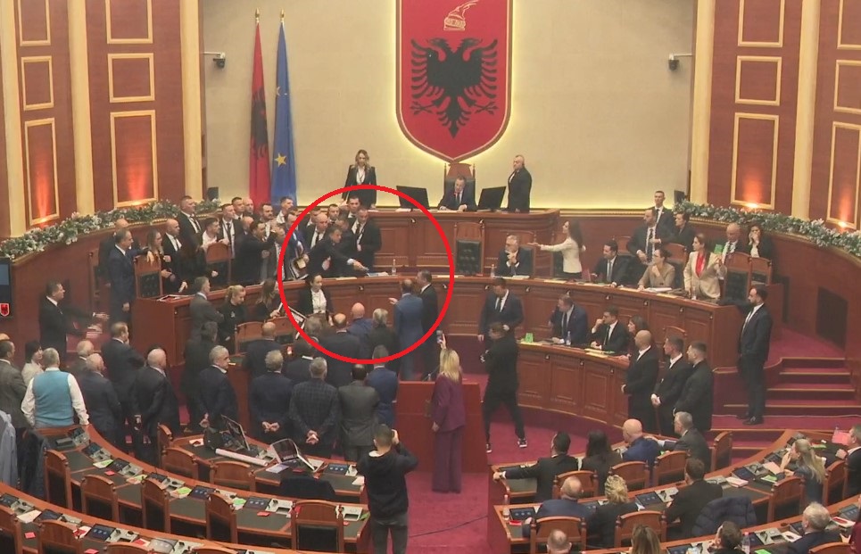 Një situatë tensionuar në kufijtë e një skandali ka ndodhur në seancën e sotme parlamentare, ku Komandanti i Gardës ka tentuar të hakmerret ndaj deputetit të Partisë Demokratike, Flamur Noka, pasi ky i fundi i ka derdhur shishen me ujë në kokë.
