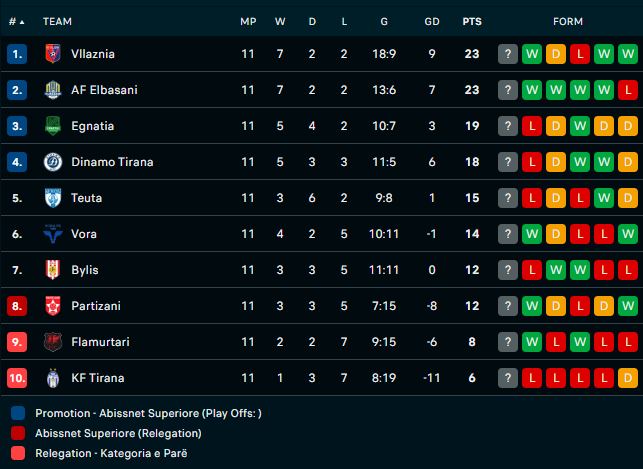 Raundi i 12-të i Superligës mbyllet të dielën me takimet Flamurtari – KF Tirana dhe Partizani – Vllaznia. Janë shkodranët dhe AF Elbasani që me 23 pikë ndajnë kreun e renditjes.