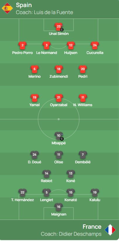 Niko Uilliams, Merino, Pedri dhe Jamal me dopietë, ishin autorët e golave për Spanjën, ndërkohë që për Francën shënuan Mbape, Sherki, autogol i Vivian dhe Kolo Muani.