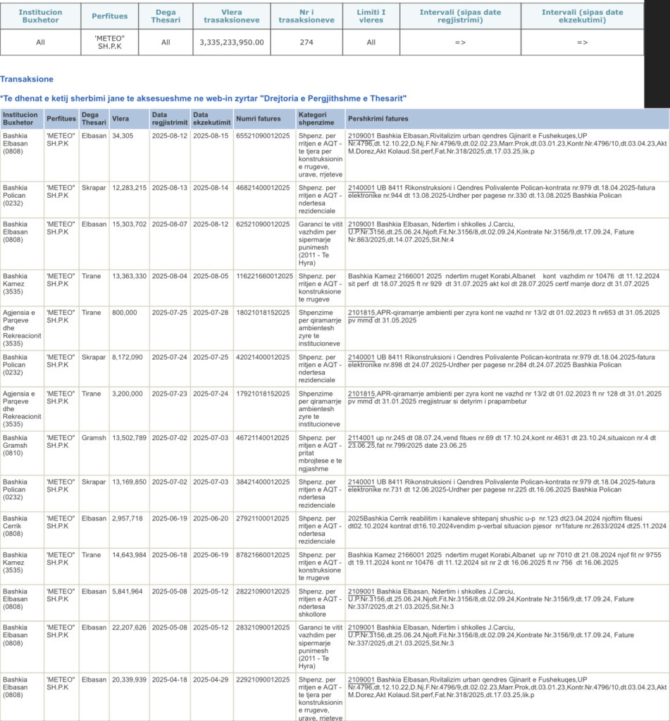 Të dhënat nga Thesari tregojnë transaksione prej mbi 33 miliardë lekë të derdhura në llogaritë e firmave të tij që nga viti 2019.