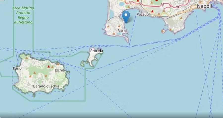 Një tërmet i fortë me magnitudë 4.6, u ndje në Napoli dhe në zonën e Campi Flegrei në orën 12:47. Mediat italiane bëjnë të ditur se tërmeti kishte epiqendrën në zonën e Bacolit, por u ndje në shumë lagje të Napolit, si Centro direzionale dhe Ferrovia.