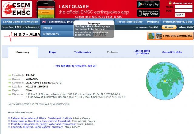 Mësohet se tërmeti ka rënë rreth 14 km larg Gjirokastrës.