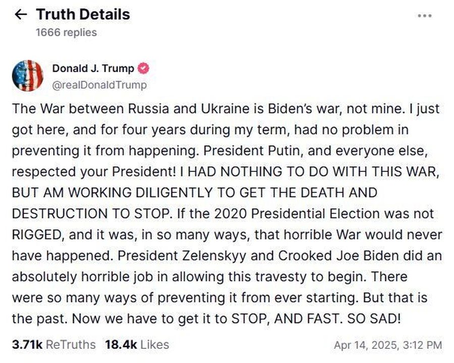 Në një postim në Truth Social, Presidenti amerikan e përshkruan konfliktin si “luftë e Bidenit, jo e imja”, shkruajnë mediat e huaja.