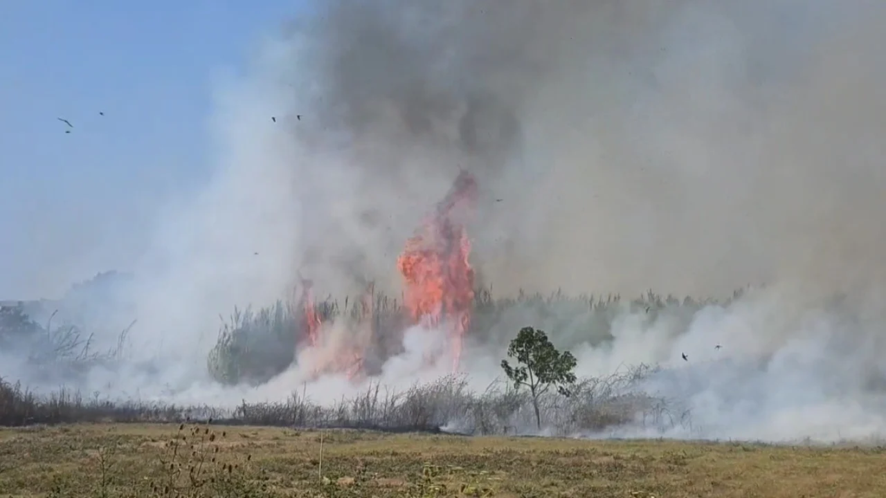 Flakët kanë përfshirë sipërfaqe të konsiderueshme tokash bujqësore dhe kallamishtesh, duke krijuar re të dendura tymi që janë përhapur deri mbi zonat e banuara, duke mbuluar edhe vetë qytetin.