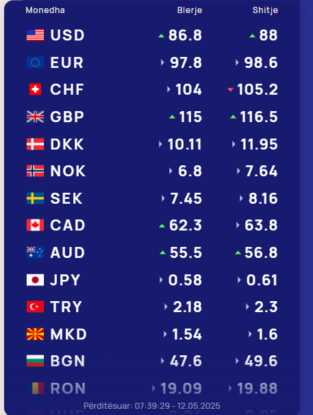 Ndërsa paundi britanik do blihet me 115 lekë dhe do shitet me 116.5 lekë.