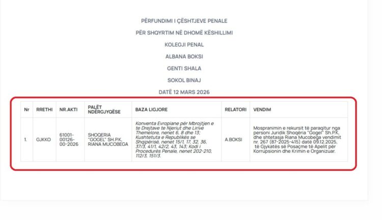 Gjithashtu, gjykata dha autorizimin për kontrollin e zyrave të dy shoqërive, “me qëllim zbulimin, administrimin dhe sekuestrimin e provave që kanë lidhje me veprën penale, duke përfshirë prova dokumentare dhe elektronike, të tilla si pajisje elektronike – aparat celular, pajisje kompjuterike laptop apo kompjuter personal, etj), si dhe çdo send tjetër që vlerësohet nga organi procedues se i shërben hetimit”.