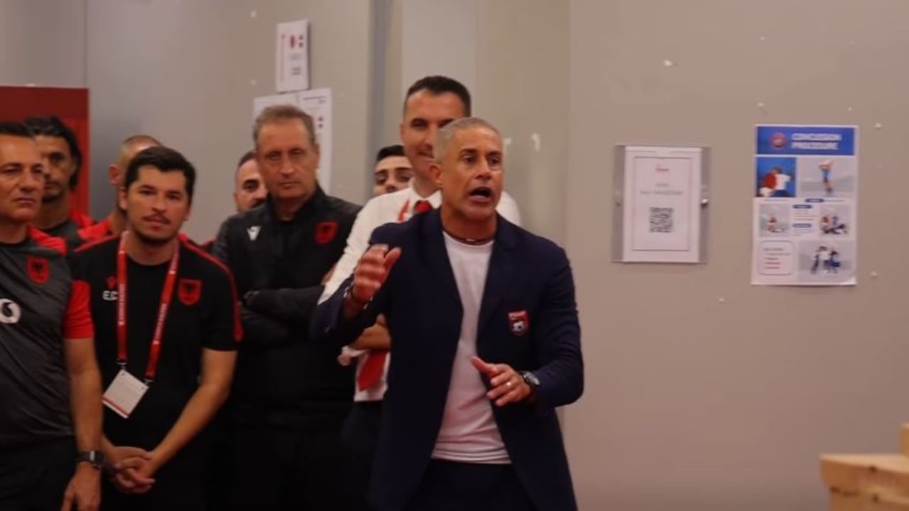“Çuna, patëm një problem. Ishte një ndeshje shumë e vështirë sonte. Urime të gjithëve. Keni bërë shumë mirë të gjithë. Kjo është rruga jonë, nuk ka rrugë tjetër! Më vjen keq nëse dikush nuk luan në një ndeshje, por ishte një ndeshje shumë e vështirë. Edhe Marashi (Kumbulla) që u aktivizua 2-3 minuta, e kuptoj, kam qenë vetë futbollist, është ndjenjë e shëmtuar, por bravo. Faleminderit shumë!