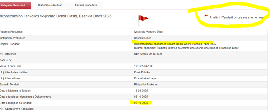 Ky tender do të rishpallej sërish dhe do të mbahej në datën 6 tetor 2025, ku do të zhvillohej raundi i fundit mes dy oligarkëve dibranë. Të gjitha këto ngarkesa me lekë për “LIQENI VII” janë paralelisht me tenderin e Qarkut Fier. Kryetarja Sema duket qartë se nuk ka verifikuar kriterin e kapacitetit teknik të kompanisë së Zanit që i ka shpërndarë mjetet dhe personelin në kontrata të tjera publike njëkohësisht. Por, nuk ka problem, banorët e Darëzezës janë të duruar, edhe nëse kompanisë fituese nuk i del afati ose bën punë pa cilësi!