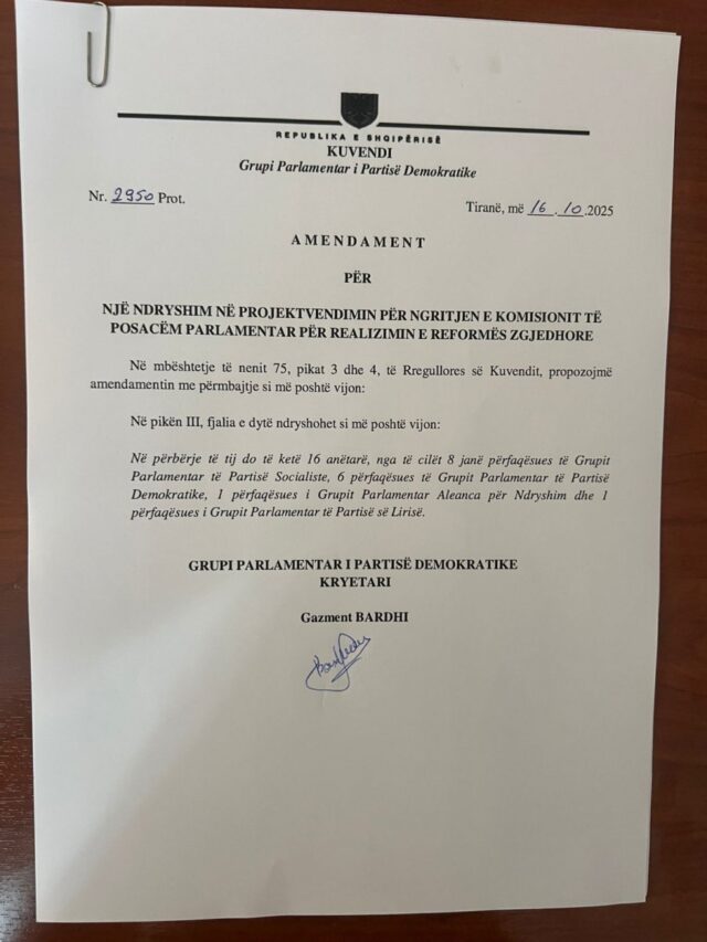 Partia Demokratike ka kërkuar ndryshime në vendimin për ngritjen e Komisionit të Posaçëm për Reformën Zgjedhore dhe Komisionit të Posaçëm për Reformën Territoriale.