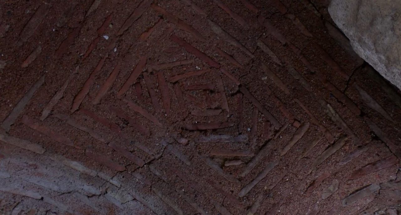 Gurët e ndërtimit të korridorit nëntokësor, i cili përmban mozaikë dhe inkorde guri, janë të formuar me mermer të përpunuar dhe të zbukuruar me relieve.