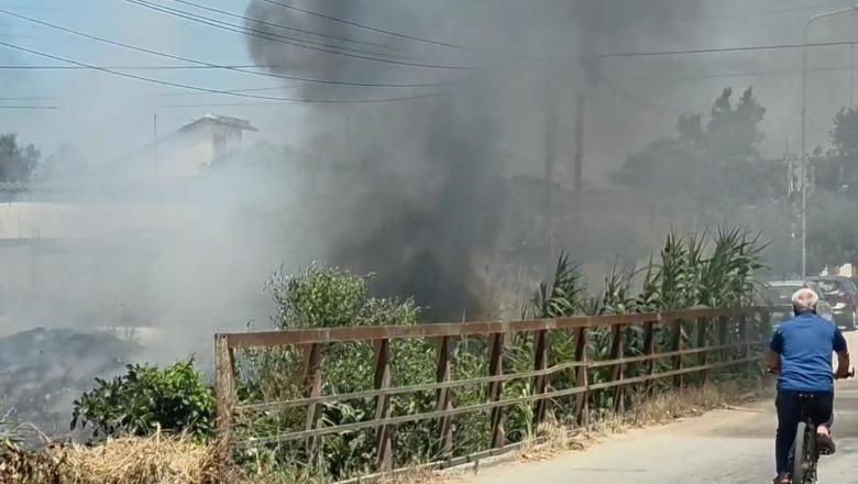 Zjarr masiv pranë shtyllave elektrike në Fier, ndërpritet energjia