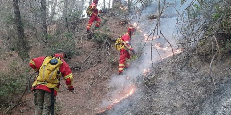 Po ndërhyhet me mjetet zjarrfikëse dhe me mjete rrethanore, ndërsa terreni mbetet i vështirë.