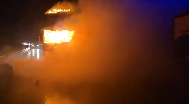 Një trailer-autobot që transportonte karburant është përfshirë nga zjarri mbrëmjen e djeshme në Rrugën e Kombit, në kilometrin e 34-të të autostradës.