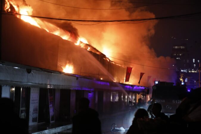Zjarri në tregun e rrobave te “5 Maji” në Tiranë ka marrë përmasa të mëdha. Shrëbimet e Ushtrisë kanë mbërritur në vendin e ngjarjes.